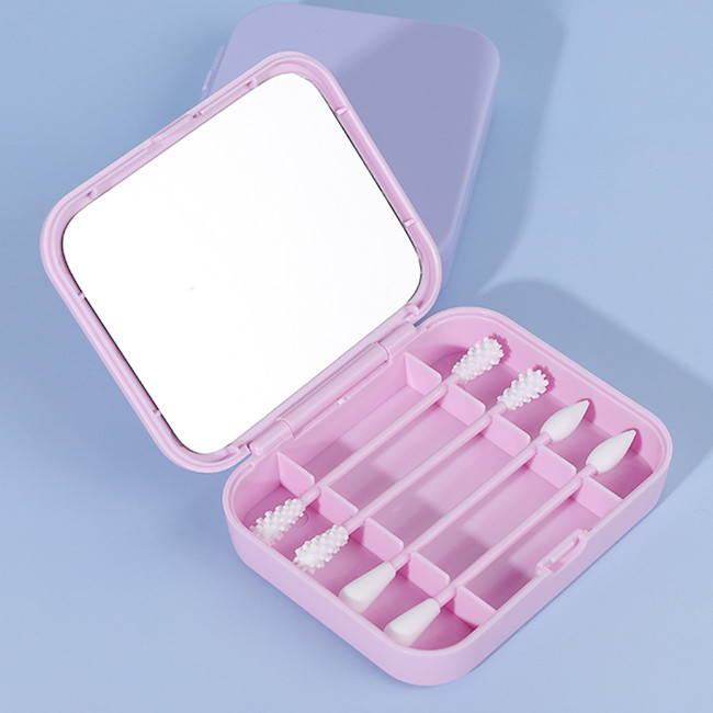 4pcs Reusable Cotton Swabs Silicone Washable Ear Buds with Mirror
