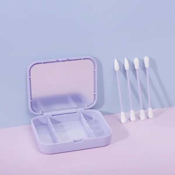 4pcs Reusable Cotton Swabs Silicone Washable Ear Buds with Mirror