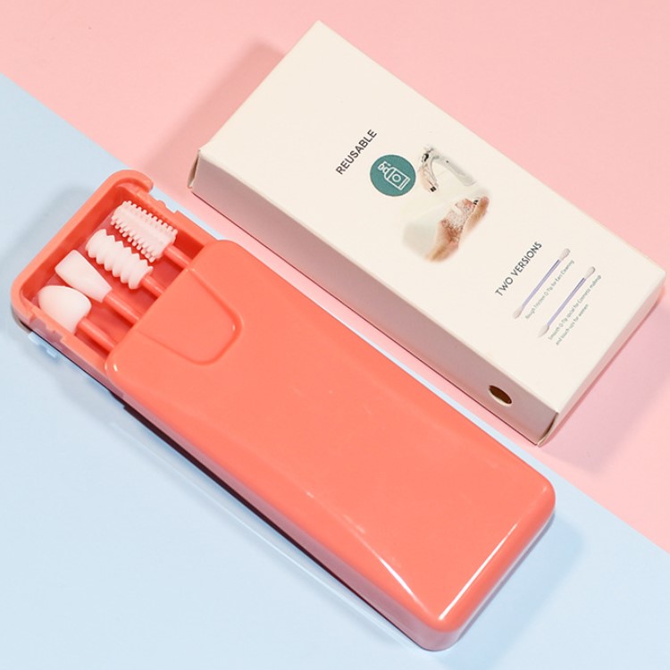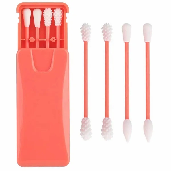 Custom 4pcs Silicone Washable Ear Buds Reusable Cotton Swabs for Ears Cleaning Makeup