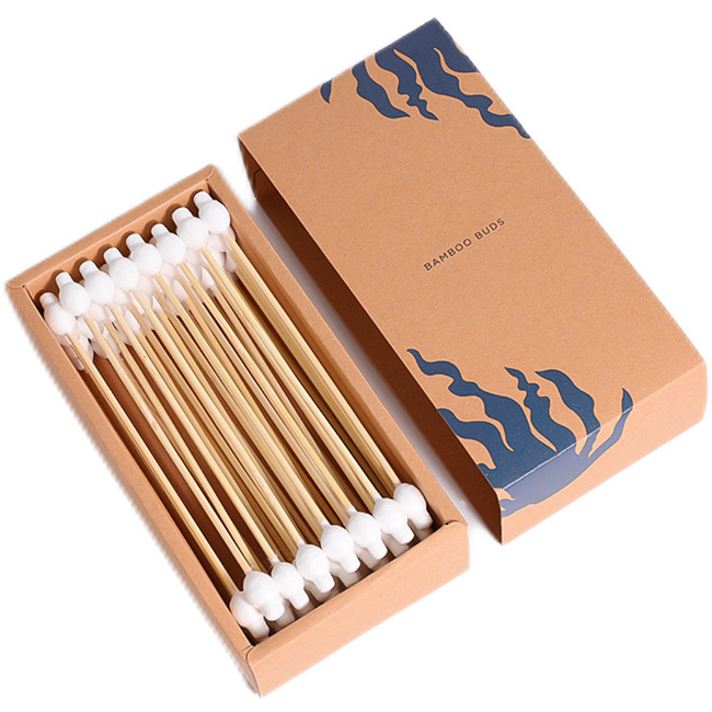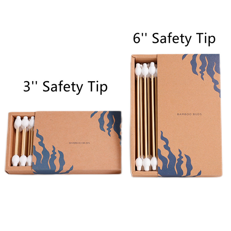 6 inch Long Bamboo Stick Safety Tip Cotton Swabs 33 Count in Drawer Box