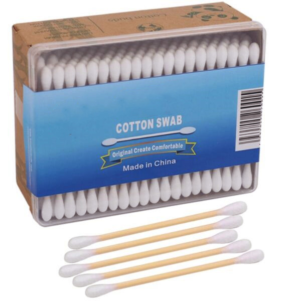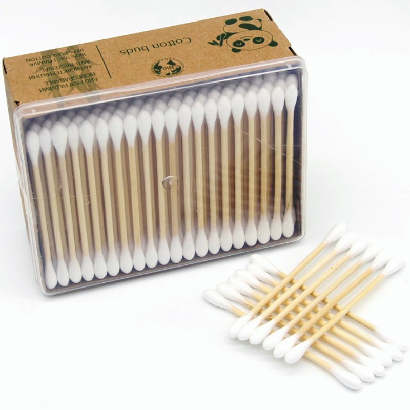 Biodegradable Bamboo Stick Cotton Swabs 200 Count in Paper Box with Clear Lid