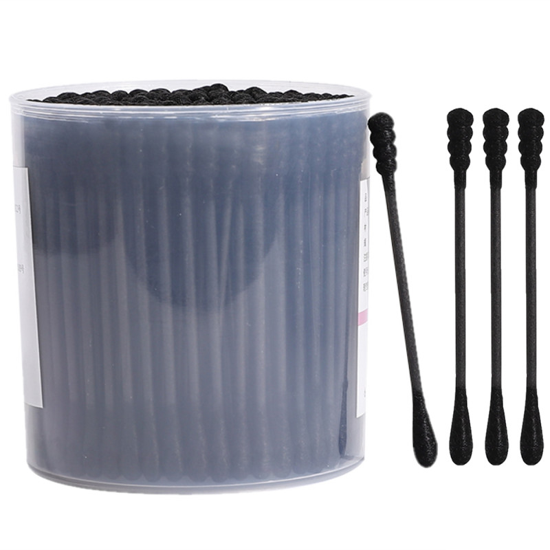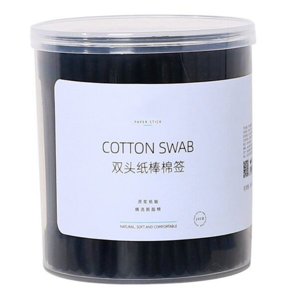 Black Paper Stick+Black Tip Cotton Swabs 200 Count in Custom Plastic Canister