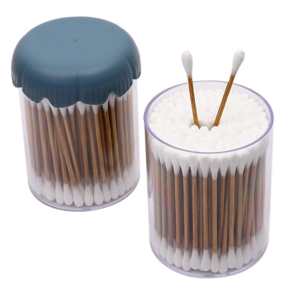 Carbonized Bamboo Stick Cotton Swabs 100 Count in Plastic Canister