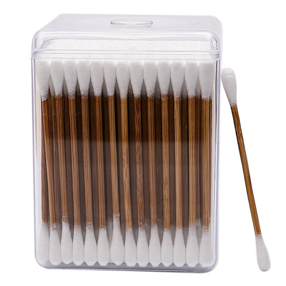 Carbonized Bamboo Stick Cotton Swabs 200 Count in Transparent Plastic Box