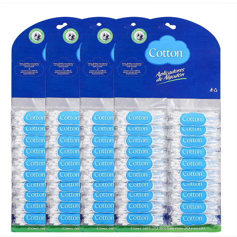 Custom Bamboo Cotton Swabs in Small Packs Attached to Cardboard (20 pcs/pack, 20 packs)