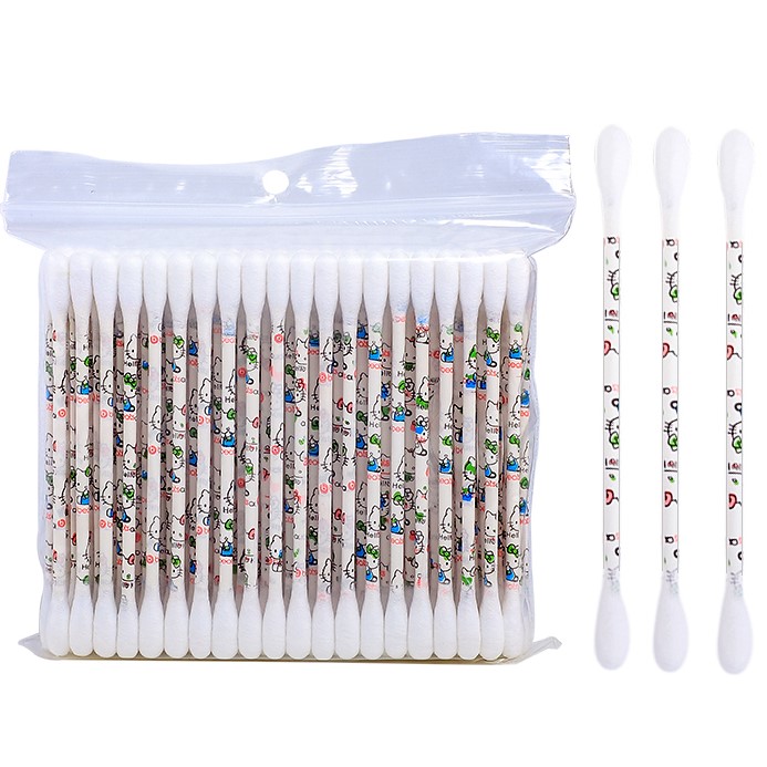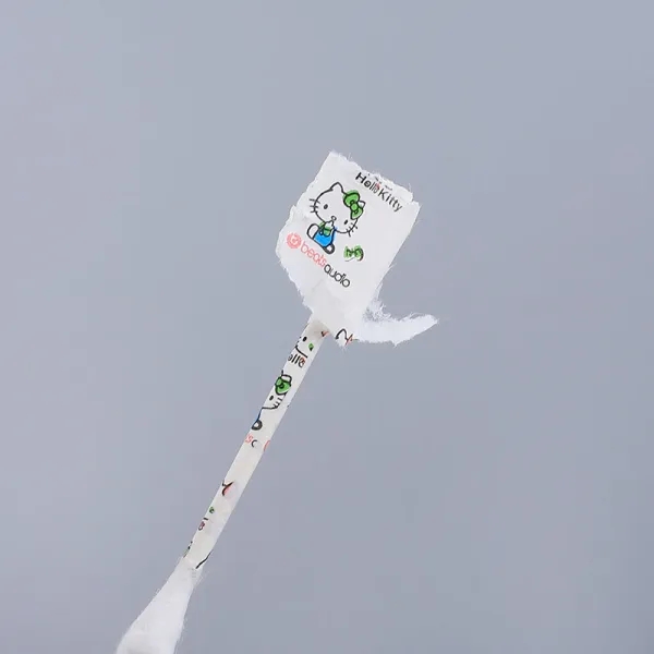 Hello Kitty Printed Cartoon Paper Stick Cotton Swabs 100 Count in Zip Bag