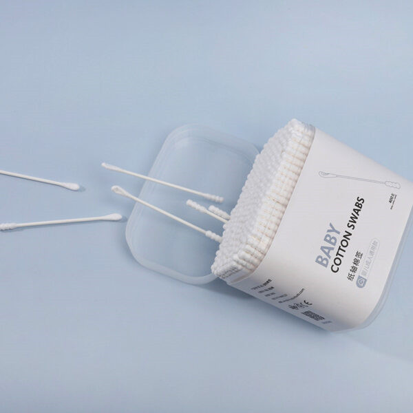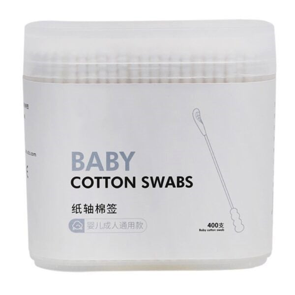 Paper Stick Spiral + Ear Spoon Tip Baby Cotton Swabs 200/400 Count in Plastic Box