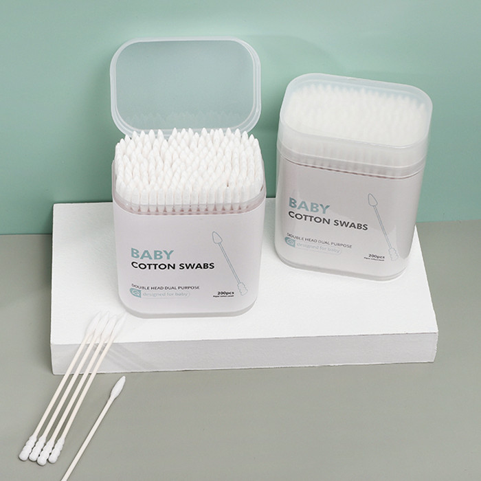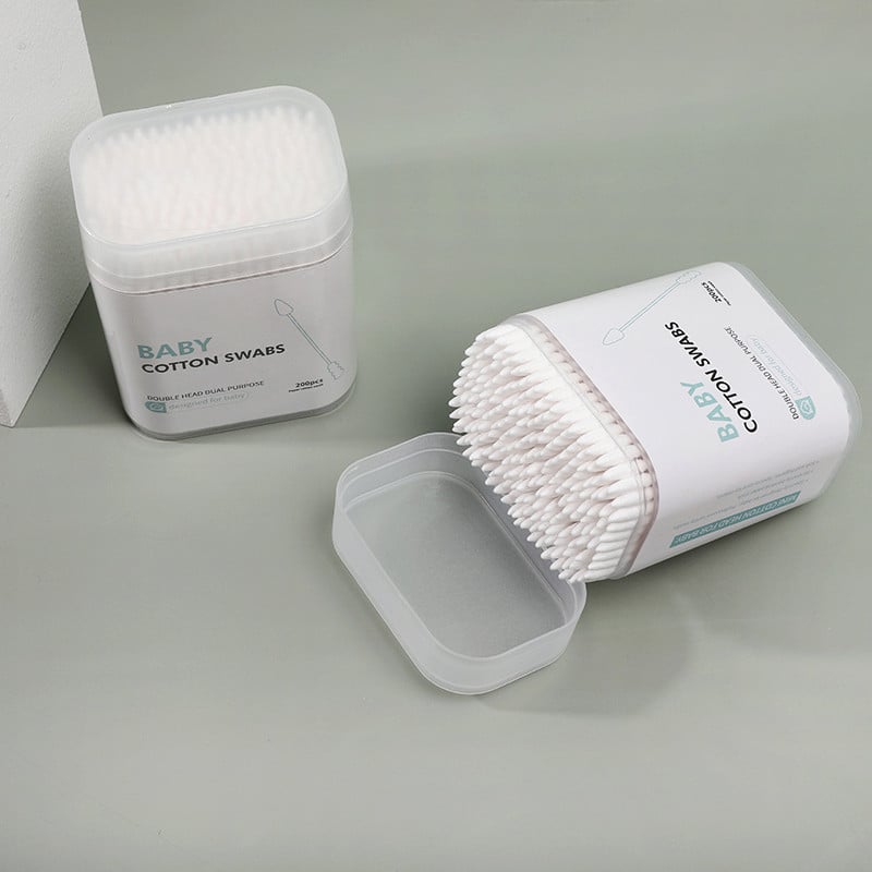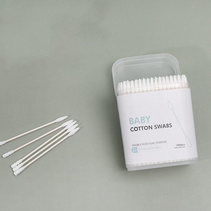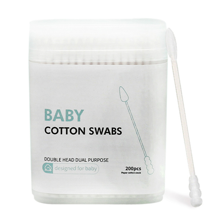 Paper Stick Spiral+Pointed Tip Baby Cotton Swabs 200/400 Count in Plastic Box