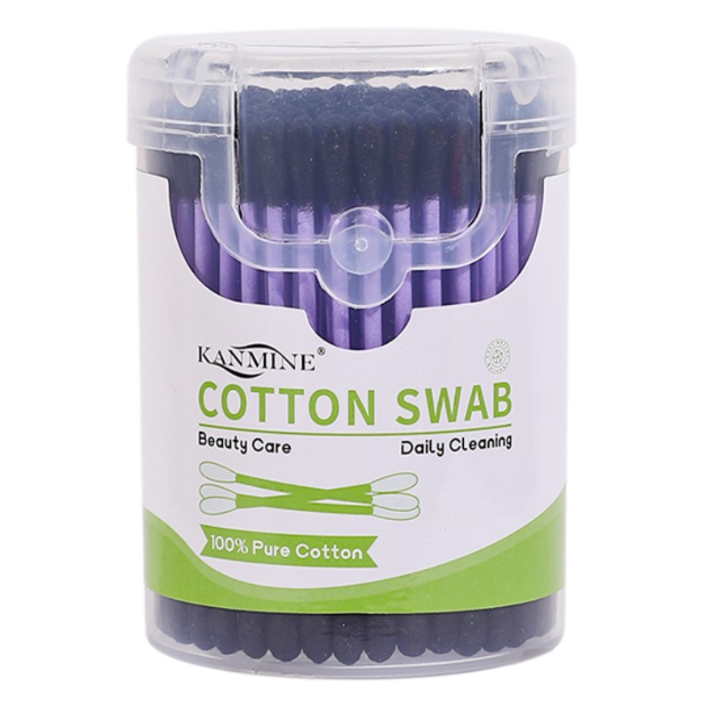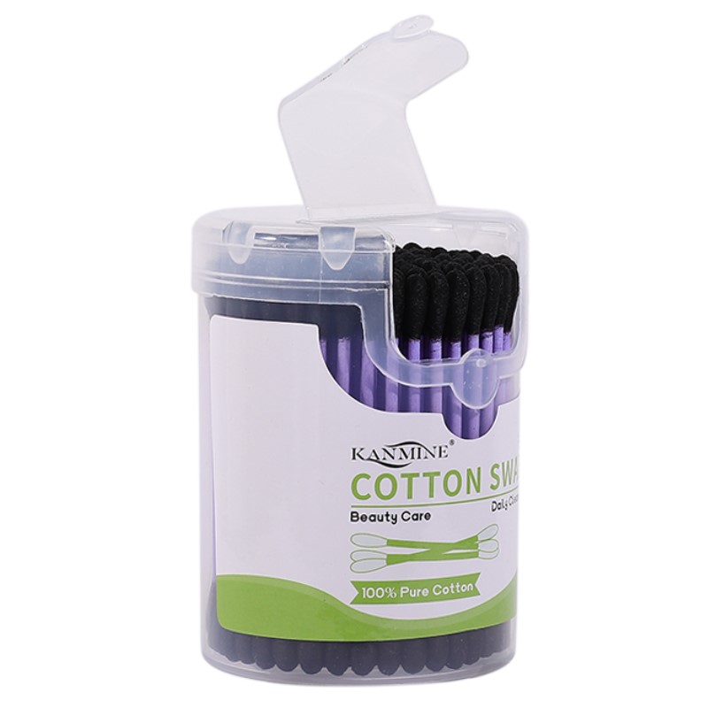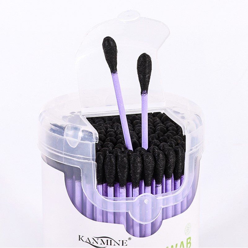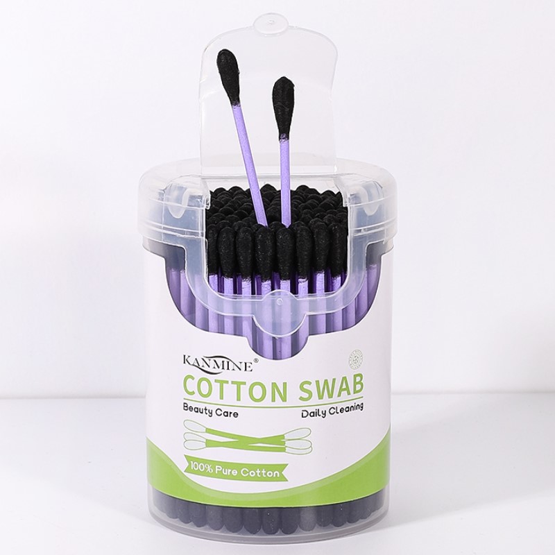 Purple Paper Stick Black Cotton Tip 100 Count Cotton Swabs