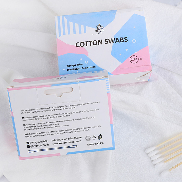 Custom Tear-open Paper Box Bamboo Stick Cotton Swabs 100/200/300 Count
