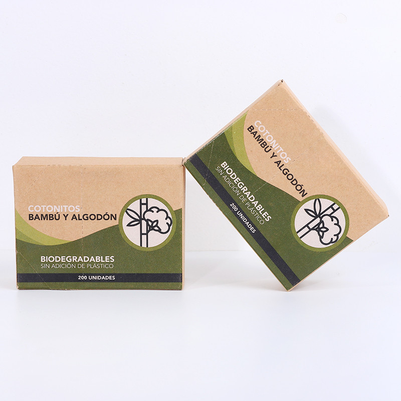 Tear-open Cardboard Box Bamboo Stick Cotton Swabs 200 Count